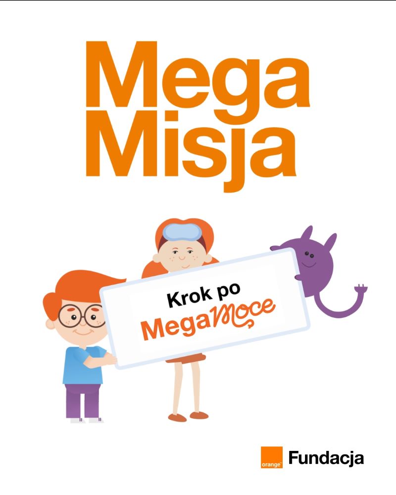 MegaMisja to program Fundacji Orange, który działa w dwóch ścieżkach: dla klas 1-3 szkół podstawowych oraz dla przedszkoli. Na podstawie gotowych scenariuszy nauczyciele i nauczycielki prowadzą z dziećmi cykl zajęć przez cały rok szkolny. Od Fundacji otrzymują pełne wsparcie merytoryczne oraz materiały do pracy z dziećmi. W tematy kolejnych zajęć grupę wprowadza historia o przygodach pewnego Psotnika, któremu dzieci starają się pomóc. Poprzez zabawę i pracę w grupach rozwijają konkretne kompetencje, uczą się i podejmują refleksję o tym, jak dbać o siebie i innych w świecie pełnym ekranów.• MegaMisja dla przedszkoli skierowana jest do dzieci w wieku 5-6 lat i zachęca do rozmowy z dziećmi o uważności, emocjach, zaufaniu, proponuje także liczne aktywności ruchowe, które są szczególnie potrzebne dzieciom w tym wieku. Dodatkowe działania kierowane są także do rodziców, którzy mogą ćwiczyć w domu kompetencje zdobyte przez przedszkolaki na zajęciach.